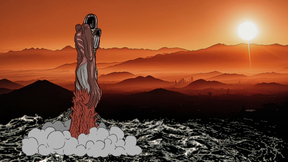 短片中第一只怪兽,命名为“死亡圣甲虫”,简称为“死虫”。埃及神话中被寓意着“重生与创造”的圣甲虫却随着新的一天太阳升起给人类带来了“死亡与毁灭”。”死虫“用独特的口器蚕食着人类的城镇,用众多的颚足将建筑摧毁再扫入下颚中咀嚼进食。第二只怪兽设计是从废墟与残骸中诞生的,腿部的设计是由人类的手相互交错组成的,意在象征人类的双手驱动着更大的灾厄前进的步调。