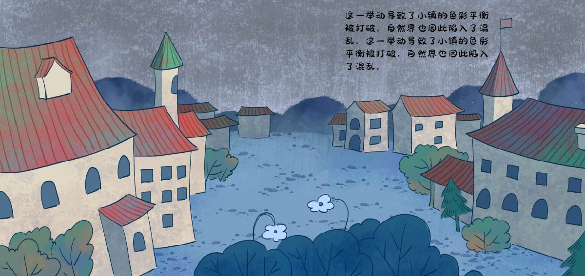 创作这个绘本的意义在于通过一个奇幻的色彩精灵故事,传递“每个人都是独特的存在,都有值得被看见的光芒”。鼓励读者(尤其儿童)发现自我价值,学会欣赏他人与自己的不同。在云朵之上的调色盘小镇,居住着七位拥有神奇力量的色彩精灵:红、橙、黄、绿、青、蓝、紫。它们每天辛勤工作,为世界增添绚丽的色彩。然而,紫色精灵因长期被误解和忽视,决定悄然离开,这一举动导致了小镇的色彩平衡被打破,自然界也因此陷入了混乱 。 小镇陷入失衡一蝴蝶翅膀褪成枯叶,葡萄园结出透明果实,黄昏永远停在下午五点半。