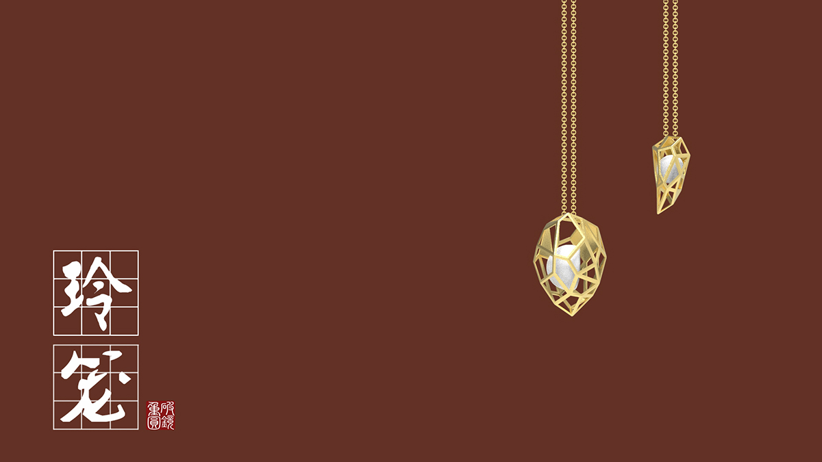 本组新中式首饰主题为《破镜重圆》,材料选用了白玉、珍珠、18k金、珍珠母贝、珍珠。其中共分为三组,分别名为《朱砂》、《星月》、《玲笼》。它们都贯穿了分离与结合的故事,每一组也都有各自有趣的联系,分别以前后相叠、金链相牵、磁石相吸的方式组合,形成更特殊的造型。